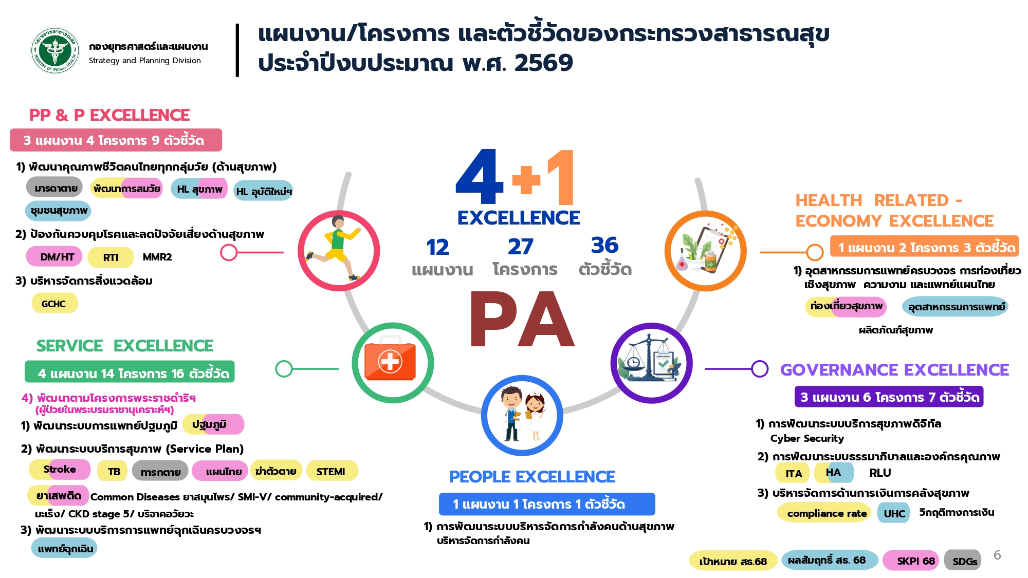 6. ปฏิบัติงานตามนโยบายเร่งด่วนด้านสุขภาพของรัฐบาล กระทรวง เขตสุขภาพและจังหวัด